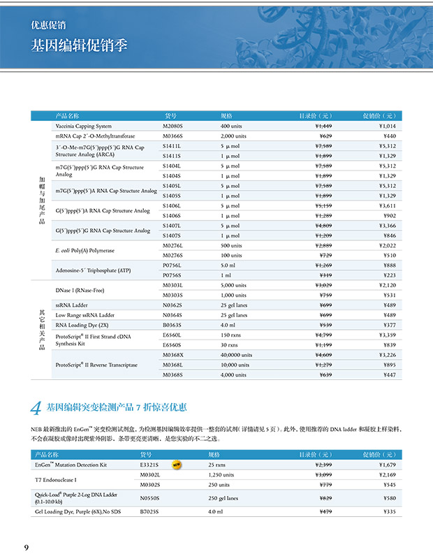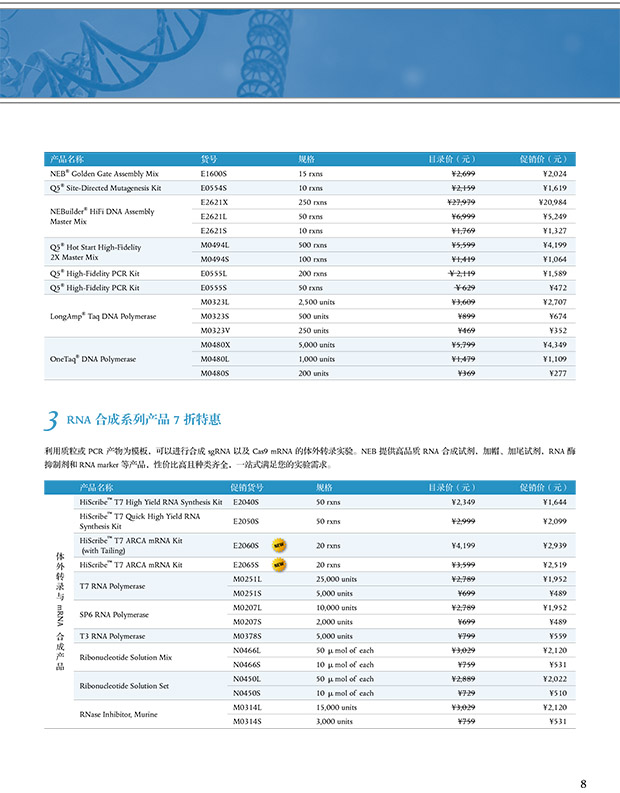 2. 模板制備相關產品 7.5 折3. RNA 合成系列產品 7 折特惠