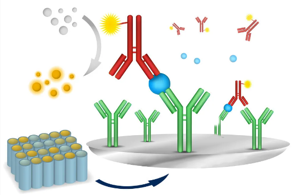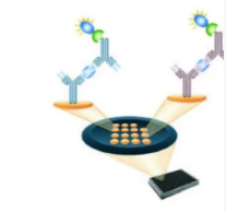 多因子檢測是一種基于96孔板夾心法酶聯(lián)免疫檢測技術。涉及到特異性針對各標志物的包被抗體和檢測抗體。把樣本和校準品加入到包被了抗體的96孔板點陣中,這樣就能在96孔板中固定住它們的位置。洗去未結(jié)合的蛋白,加入特異性生物素標記的多因子抗體混合物。