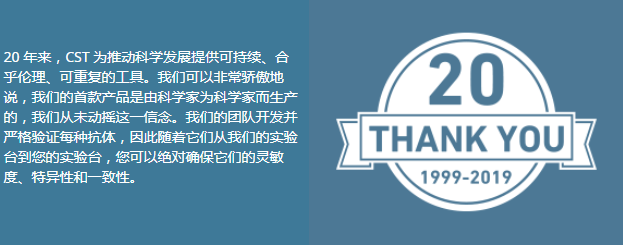CST是一家由科學(xué)家創(chuàng)立的私營(yíng)家族公司,致力于提供全球最高品質(zhì)的創(chuàng)新研究和診斷產(chǎn)品,加速生物學(xué)認(rèn)知以及實(shí)現(xiàn)個(gè)體化醫(yī)療。其高質(zhì)量的產(chǎn)品和專(zhuān)業(yè)的研發(fā)精神已被全球客戶(hù)推崇為“細(xì)胞信號(hào)研究的金標(biāo)準(zhǔn)”和‘最佳抗體。CST 的可持續(xù)發(fā)展計(jì)劃在生物制藥行業(yè)受到普遍認(rèn)可。
