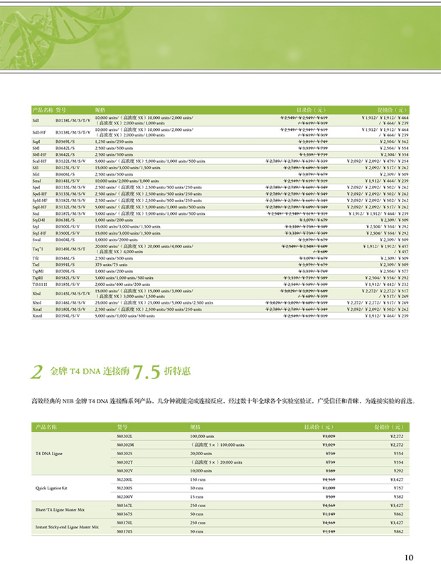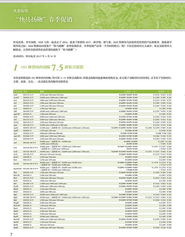 1、 193 種省時(shí)內(nèi)切酶 7.5 折驚喜促銷