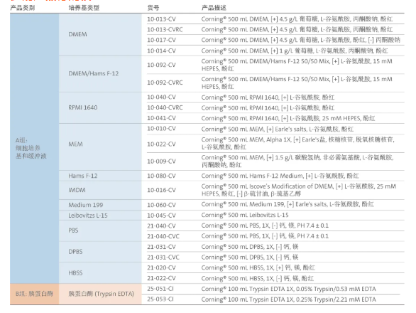 康寧生命科學為客戶提供一系列值得信賴的高品質(zhì)細胞培養(yǎng)試劑,包括細胞培養(yǎng)基和各種細胞培養(yǎng)添加劑,為處于各生長階段的細胞提供了適宜的生長環(huán)境。連同康寧多種類型的細胞培養(yǎng)表面的耗材產(chǎn)品一起,為廣大科研用戶提供了廣泛的實驗支持。