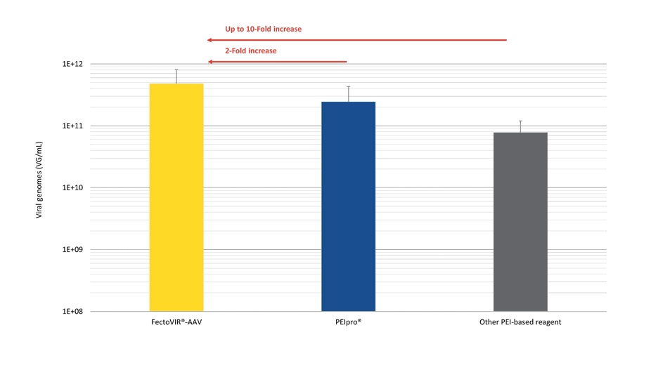 ?上圖:對(duì)比其他產(chǎn)品,FectoVIR?-AAV可提高10倍病毒產(chǎn)量