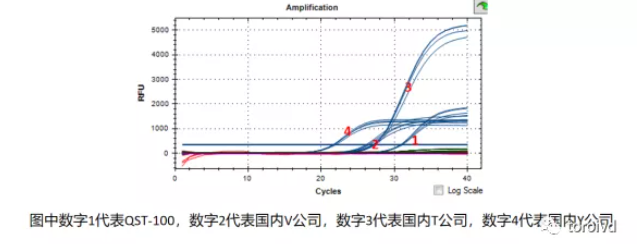 北大某課題組,所用試劑為QST-100和國內(nèi)B公司、Y公司,使用儀器為 ABI 7500.